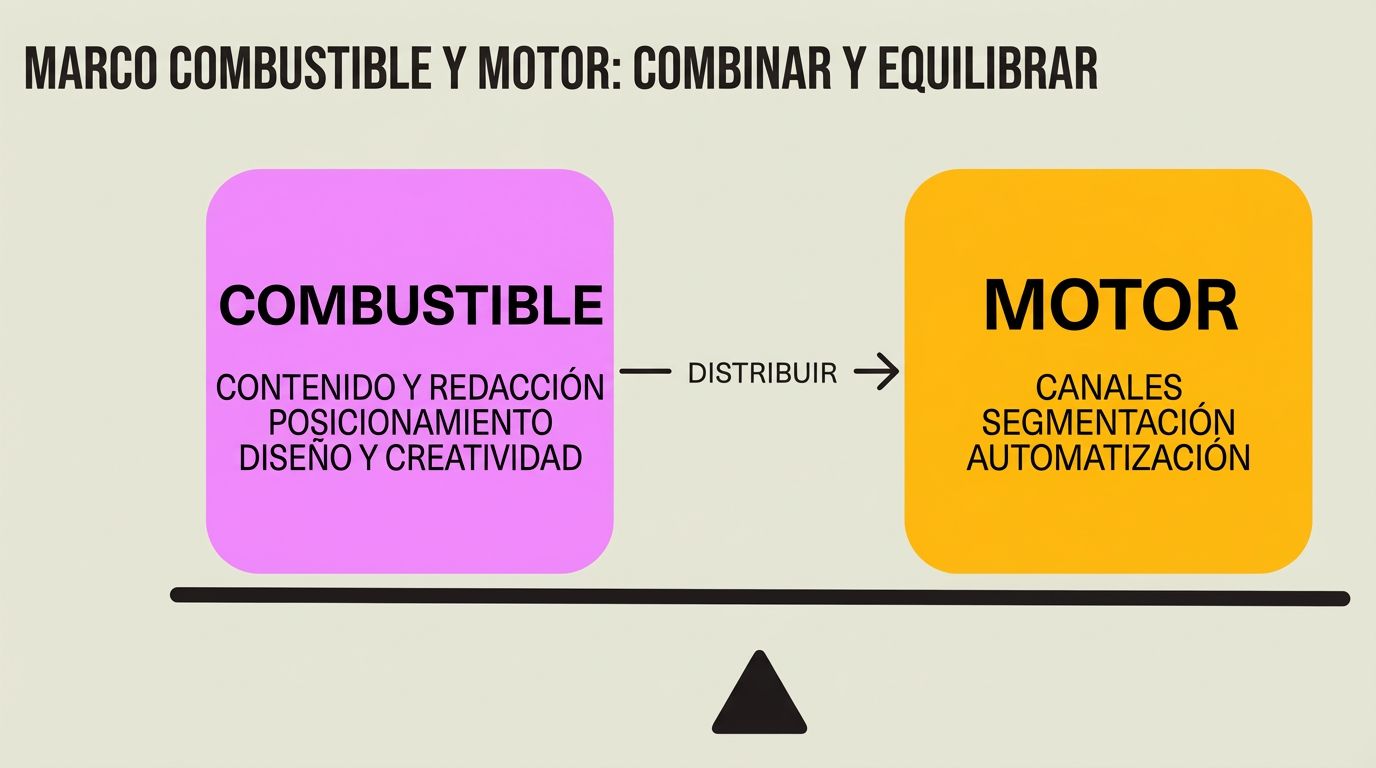 - Engine = distribución (email, ads, SEO, automatizaciones...)
